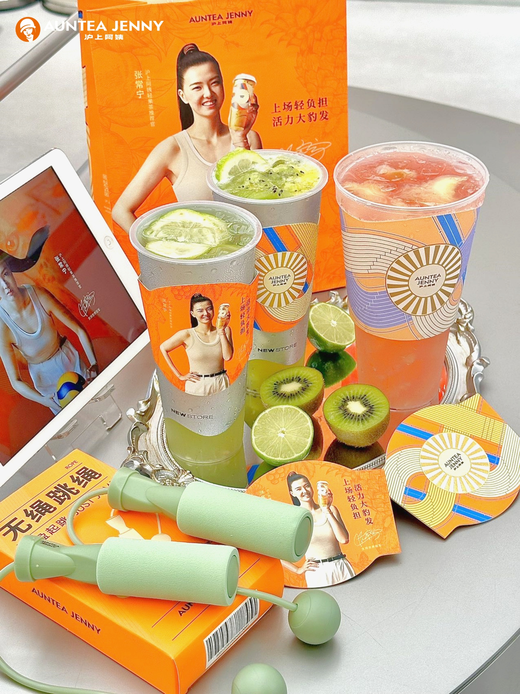 奧運之際,滬上阿姨官宣女排運動員張常寧成為輕果茶推薦官,讓世界看見中國姑娘,也看見摩登東方茶。滬上阿姨也為這次官宣帶來了充滿奧運氛圍的周邊,有倒入飲品,即可解鎖變色的巴黎跑道大桶,以及多巴胺色無繩跳繩邀請大家能夠一起輕盈起跳。