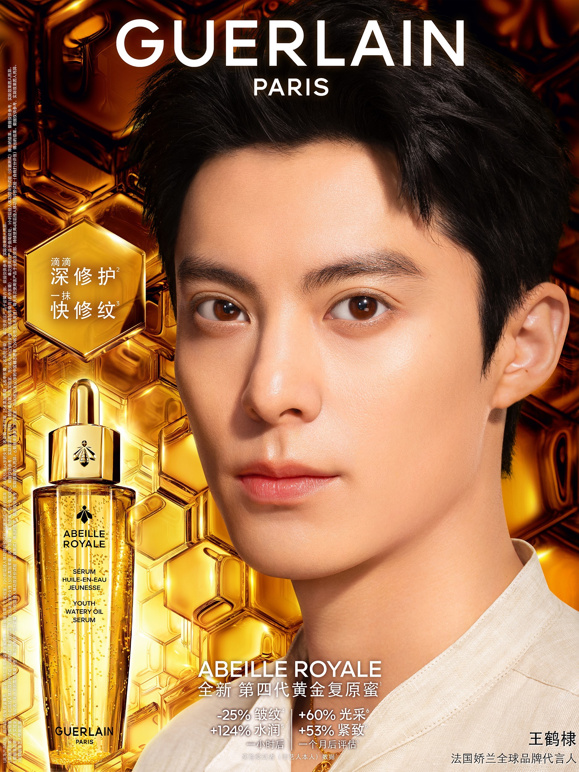 2 月 14 日,法國(guó)嬌蘭正式宣布王鶴棣(明星代言公司)由原品牌香水代言人榮升為全球品牌代言人,并將攜手撼世煥新的「第四代嬌蘭復(fù)原蜜」一起開啟肌膚年輕新篇章。