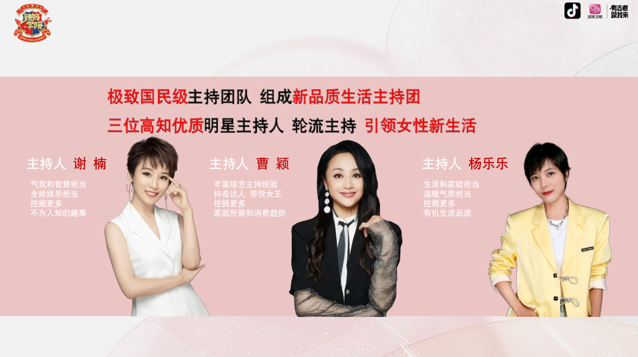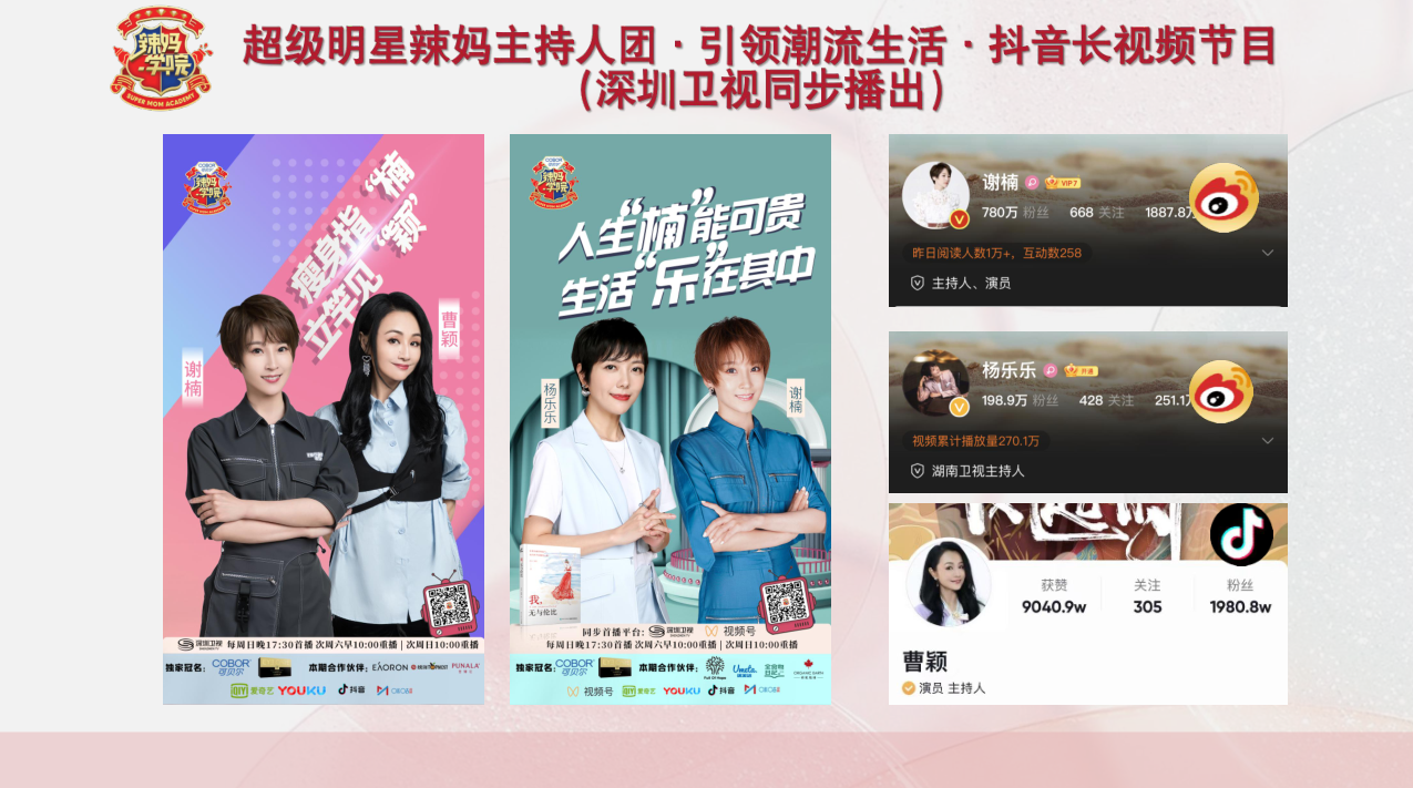 深圳衛(wèi)視重點(diǎn)打造的生活服務(wù)類節(jié)目,是時(shí)尚辣媽的生活圣經(jīng)。 《辣媽學(xué)院》致力于為追求生活品質(zhì)的女性提供全方位內(nèi)容服務(wù),新時(shí)代辣媽冉瑩穎和湖南衛(wèi)視主持人李維嘉傾情,“瑩嘉組合”全新亮相,共話時(shí)尚美妝、美顏美體、健康生活等熱門話題。