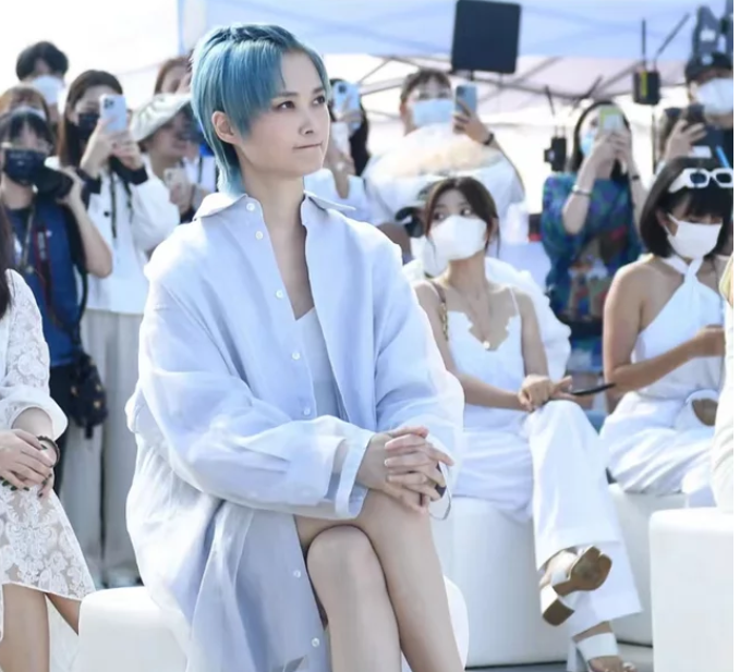 值得注意的是,李宇春將短發(fā)染成了淺藍(lán)色,頭頂還扎了一個(gè)小辮子,看上去十分搶眼。