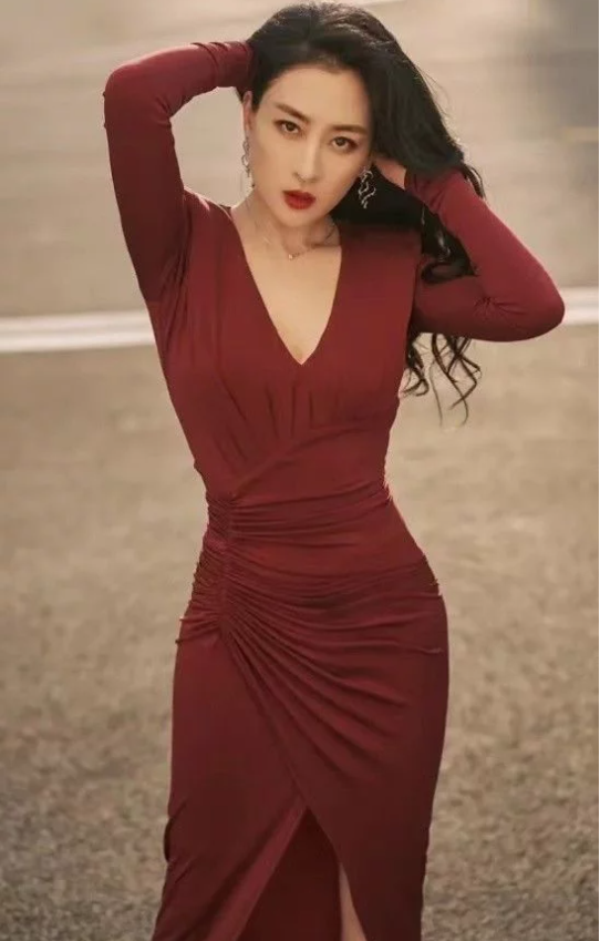 41歲馬蘇罕曬性感照,穿深V禮服小露事業(yè)線,身形纖瘦呈“S”型