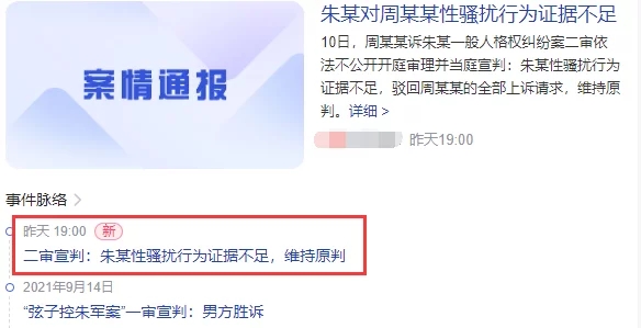 據(jù)悉,8月10日下午,朱軍案二審結(jié)果出爐,法院認(rèn)為周某(弦子)提交的證據(jù)不足,無(wú)法證明朱軍對(duì)其有X騷擾行為,所以維持一審判決,駁回周某的全部上訴請(qǐng)求。