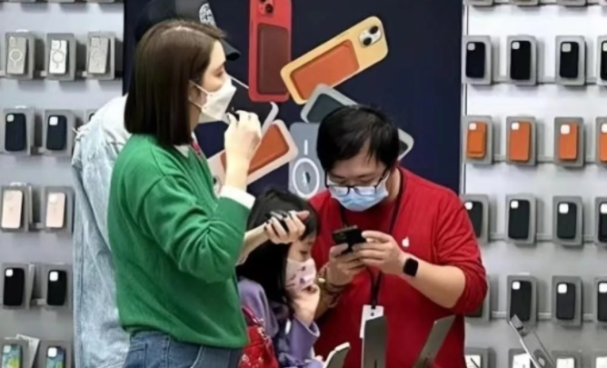 隨后,一家三口走到了售貨臺前,當時售貨員正在解說商品,張晞彤站在了售貨員身側,用右手支撐著頭部,聽得十分認真。而張丹峰和妻子則站在一旁討論其他商品,大概是口罩內霧氣太多,洪欣時不時用手撐開口罩換氣。畫面中,洪欣的腹部明顯突起,網友懷疑她可能懷孕了。