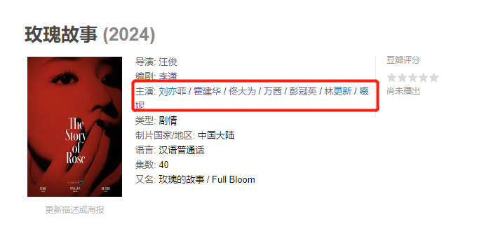 《玫瑰故事》作為鵝廠和新麗力推的劇集,此番在演員上的配置也是堪稱豪華,除了女主劉亦菲外,剩下的主演陣容也是相當?shù)恼?,絕對的要顏值有顏值,要演技有演技的存在。