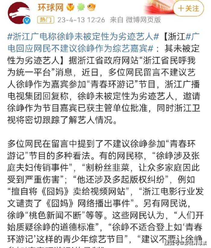 徐崢以“常駐嘉賓”的身份,參加了浙江衛(wèi)視真人秀《青春環(huán)游記4》,但是他只錄了幾期就退出了。為什么退出呢?有兩個原因:第一是因為有觀眾舉報徐崢,說他是劣跡藝人,希望《青春環(huán)游記》節(jié)目組可以辭退他。4月13日,浙江衛(wèi)視發(fā)聲明表示:徐崢沒有被定性為劣跡藝人,邀請他之前,已經(jīng)向主管單位申請過了,得到了批準。