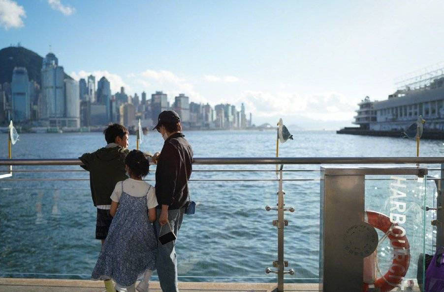 曬帶等等小花出國游玩照,母子三人牽手攬肩幸福開心。