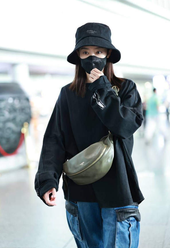 9月18日,北京,張小斐穿黑色衛(wèi)衣牛仔褲現(xiàn)身機(jī)場(chǎng),頭戴漁夫帽神采飛揚(yáng)。