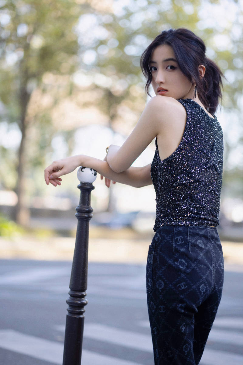 張子楓穿亮片背心青春靚麗 陽臺上玩轉(zhuǎn)法式慵懶風(fēng)