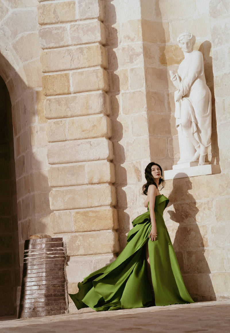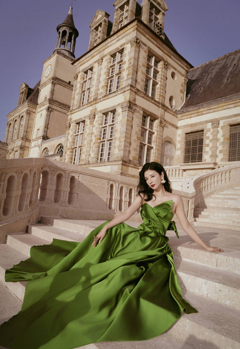 10月5日,黃奕(經(jīng)紀(jì)公司)的一組靜謐古堡寫真大片釋出,她身穿綠色抹胸禮裙置身古堡,綠裙迤邐,明媚張揚(yáng)。