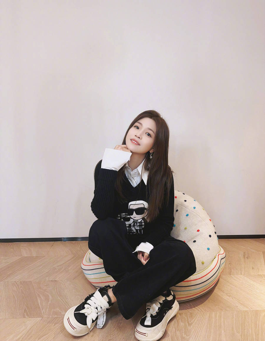 近日,陳妍希在個人社交平臺發(fā)布了一組宅家照片,照片中的陳妍希穿著黑白的休閑套裝,慵懶的坐在墊子上。