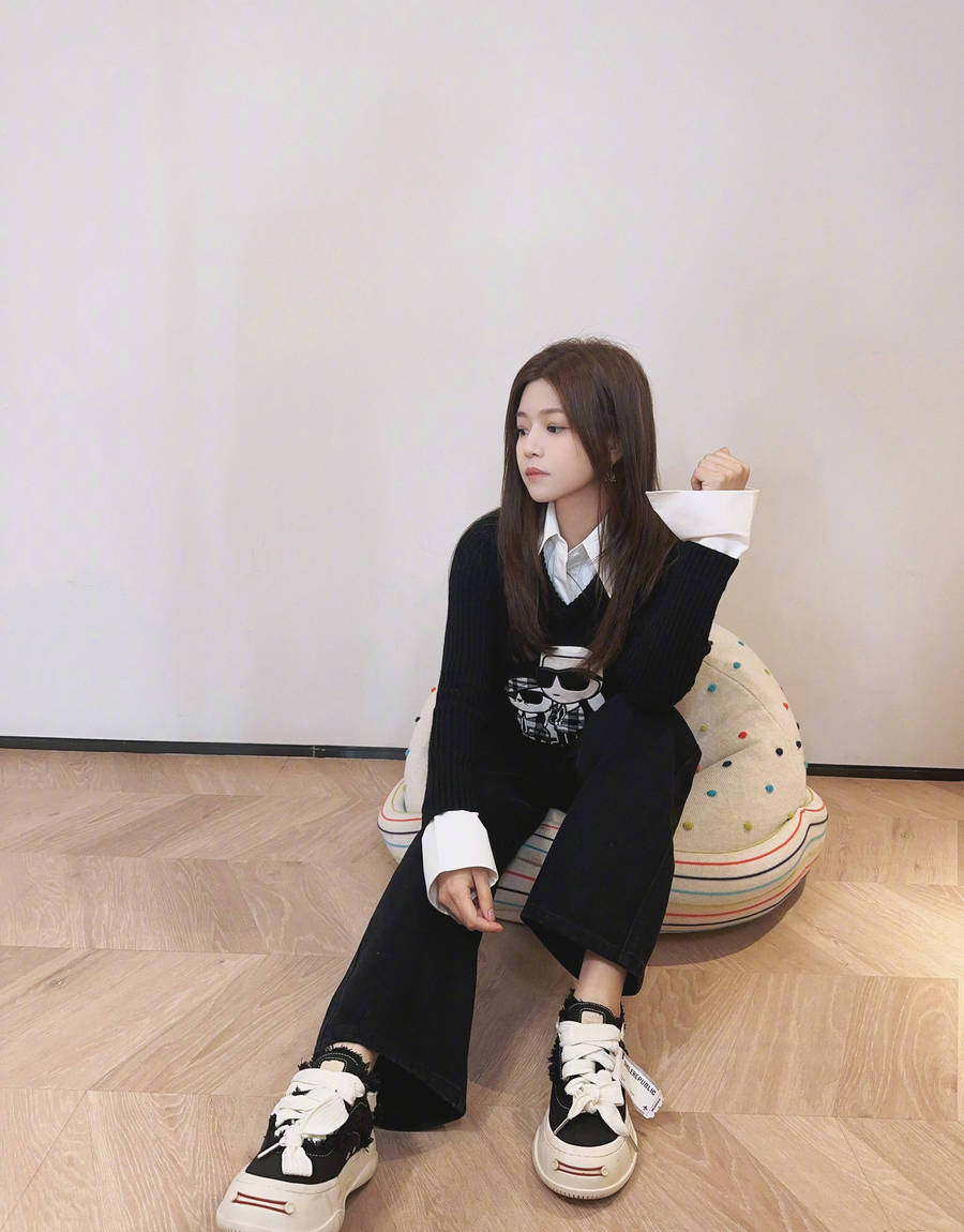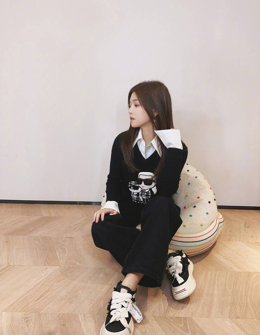 陳妍希曬宅家照片松弛感拉滿 黑白色穿搭又甜又酷