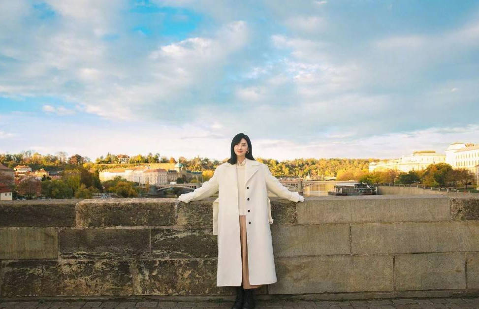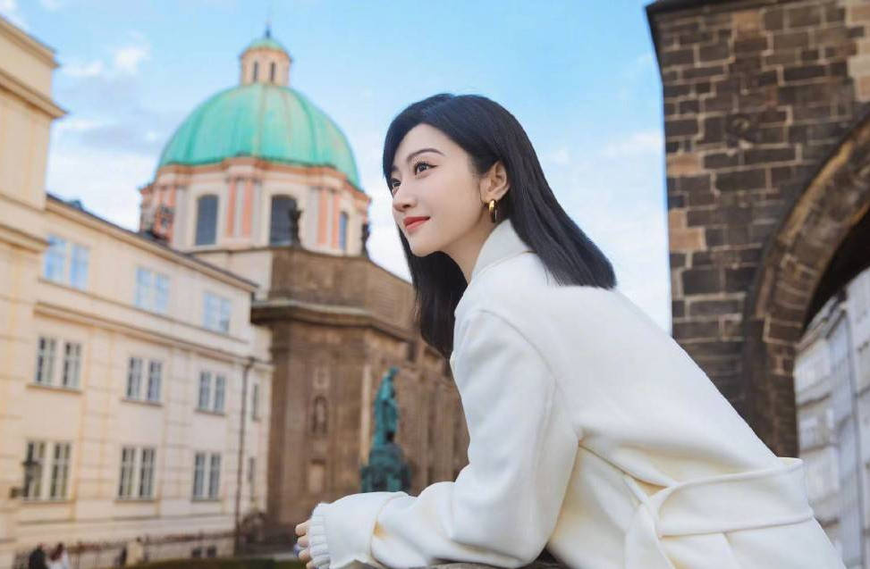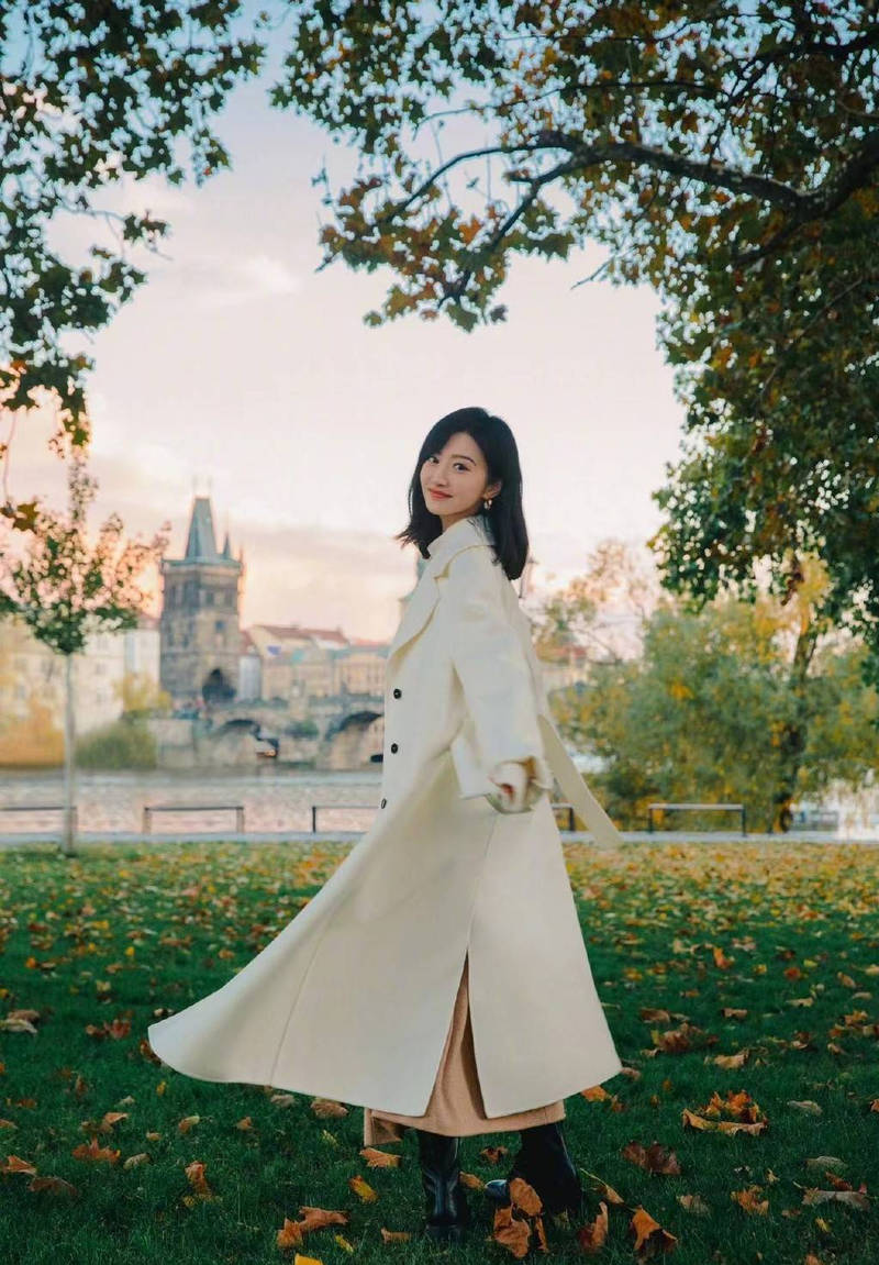 11月13日,景甜最新大片釋出,身穿白色風衣漫步布拉格,化蜜桃奶杏妝溫柔又明媚。