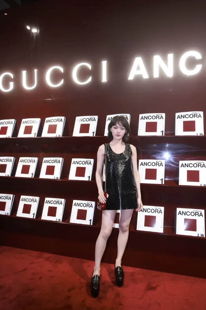 文淇一襲黑色皮裙現(xiàn)身,酷girl上線。