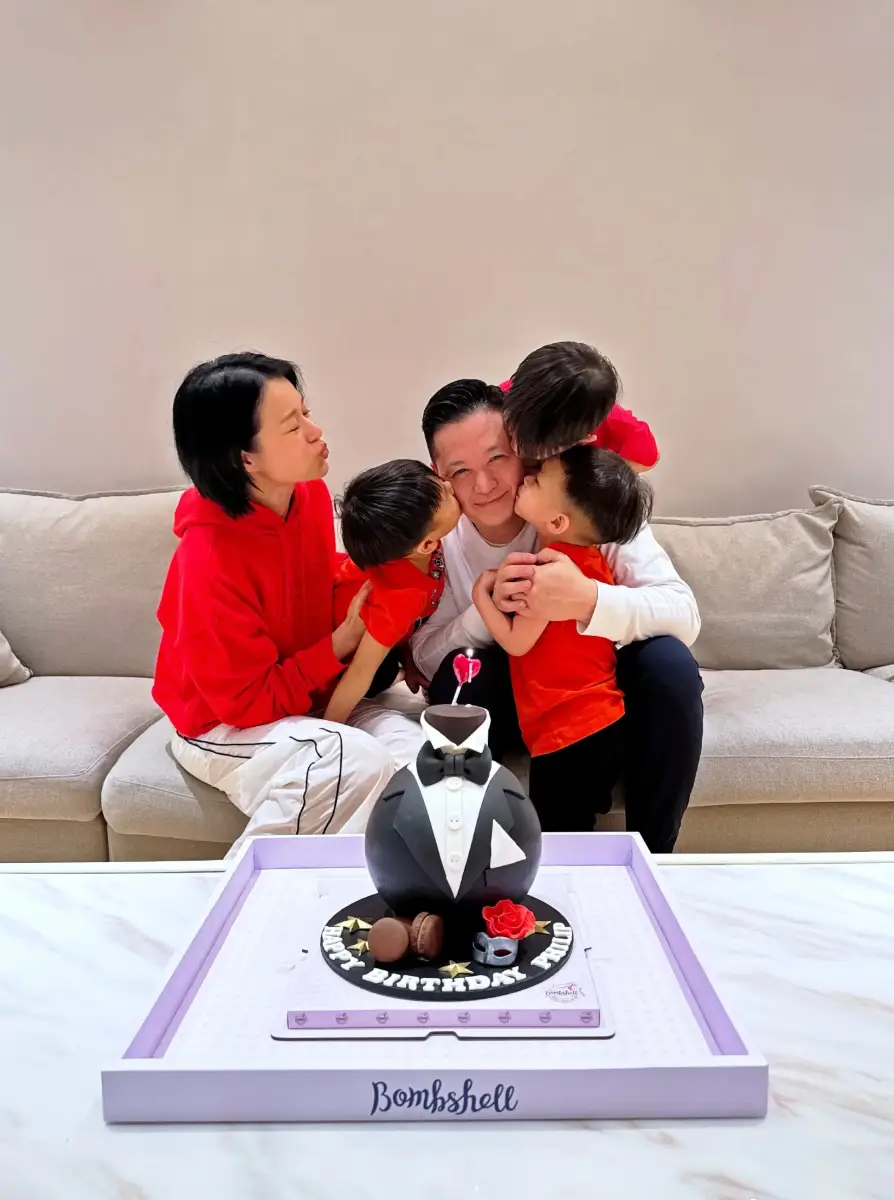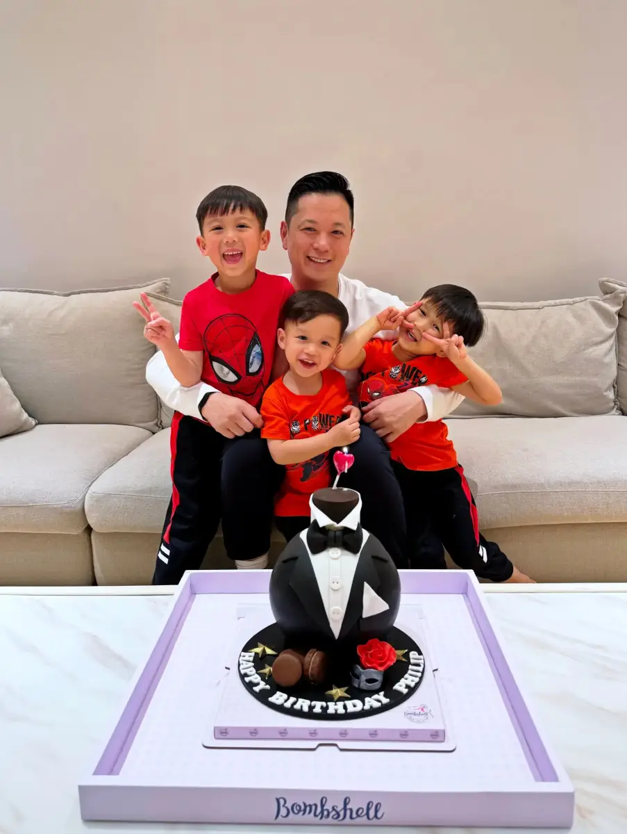 李乘德及三個兒子與蛋糕合照,其樂融融。