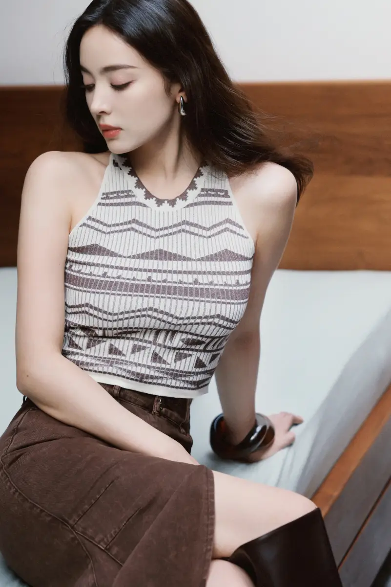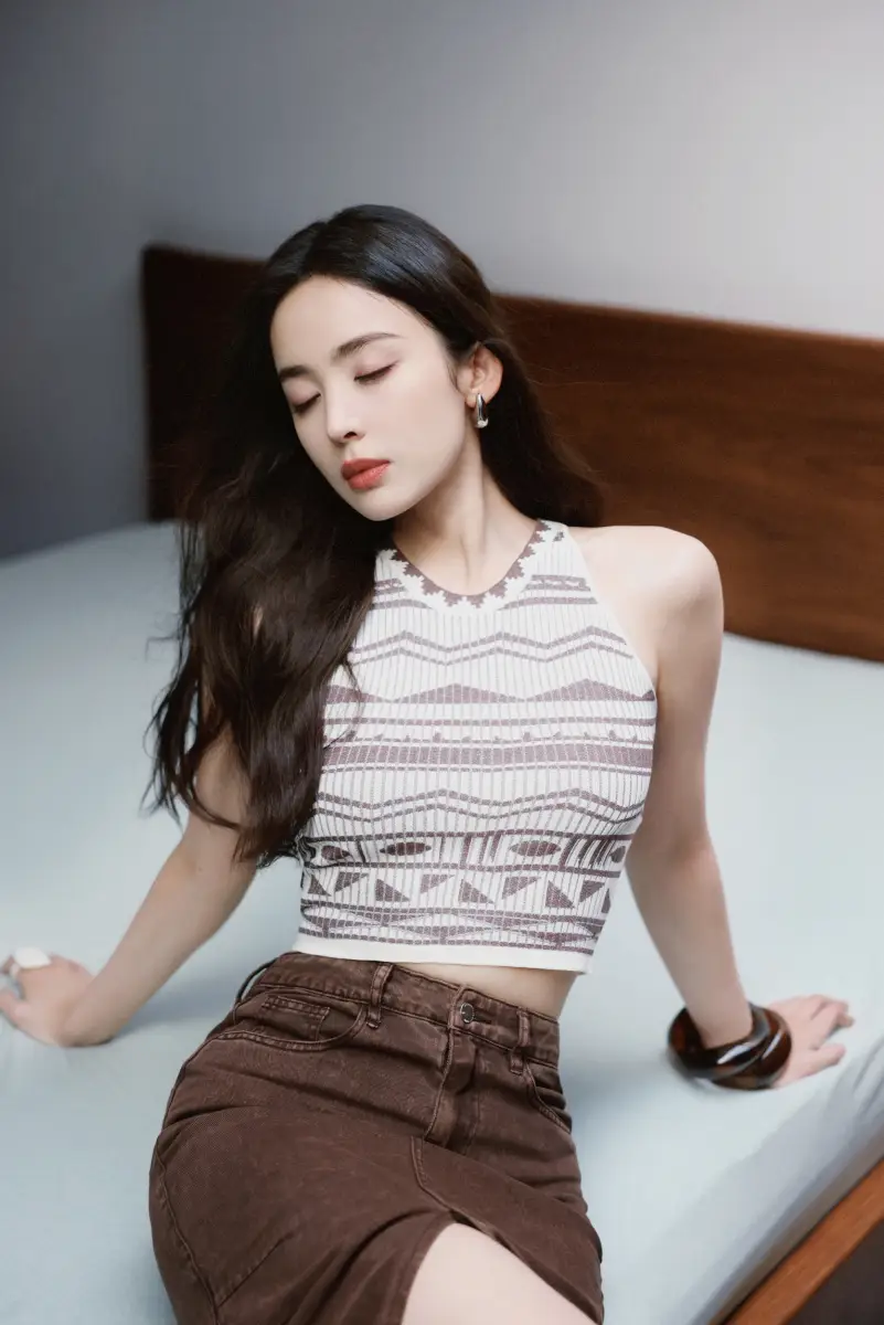 娜扎春日寫真照陽光明媚 穿條紋長裙摩登時尚