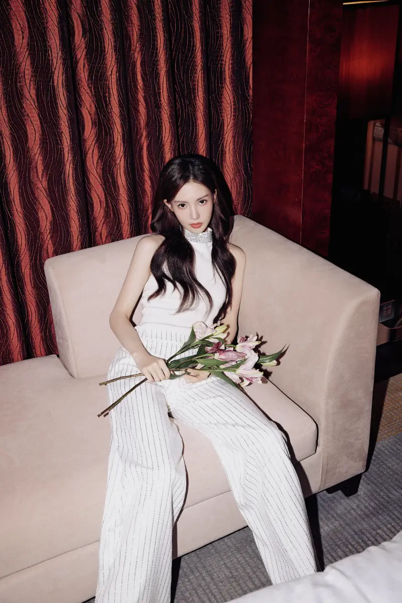 金晨純白造型簡(jiǎn)約大氣 手捧鮮花清香溢出屏幕