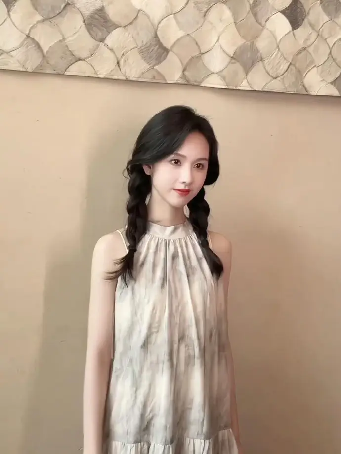 陳都靈身穿暖色裙子,兩個(gè)麻花辮襯出她的靈動(dòng)。