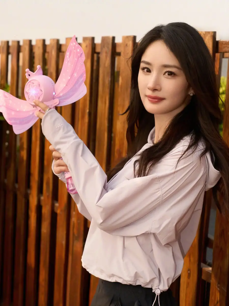 5月5日,楊冪在自己的社交媒體平臺(tái)發(fā)出想自己的一組美照,化身美少女戰(zhàn)士玩泡泡機(jī)漂亮又可愛。
