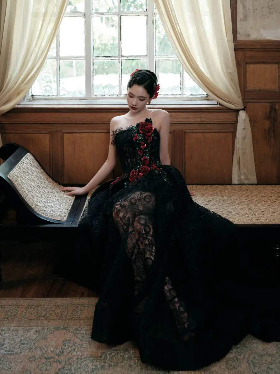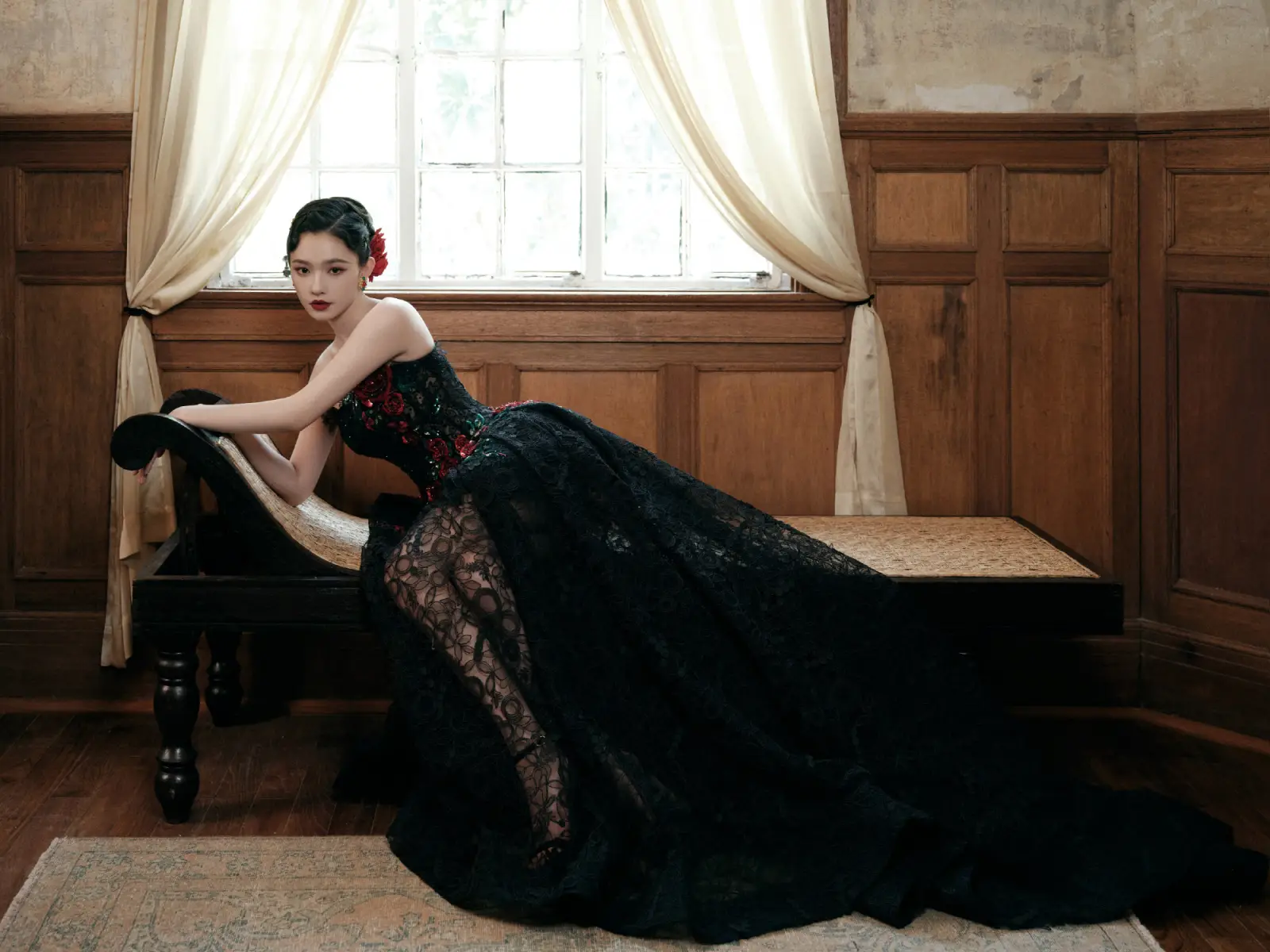 10日,林允參加芭莎盛典的造型寫真曝光,她身穿黑紗玫瑰裙嫵媚迷人,一雙白嫩美腿在裙擺中若隱若現(xiàn),魅力十足!