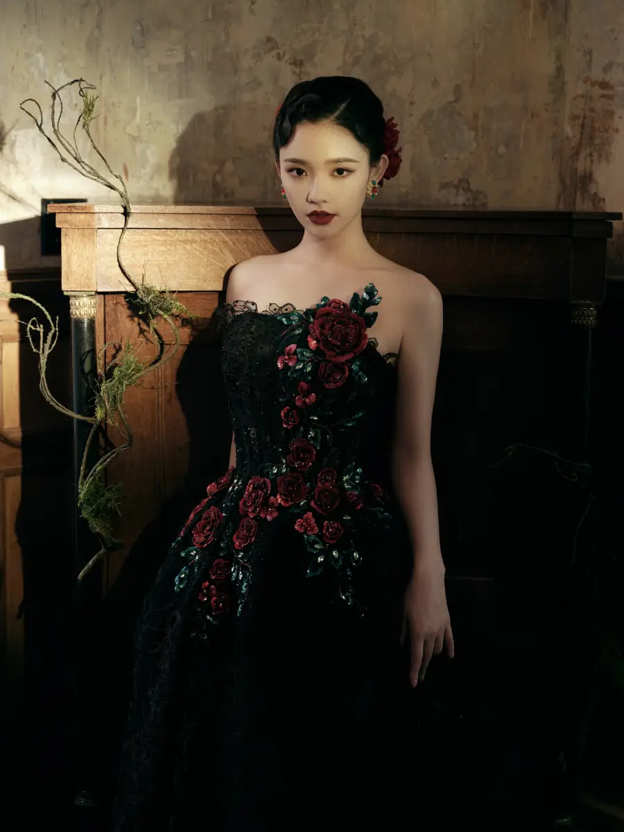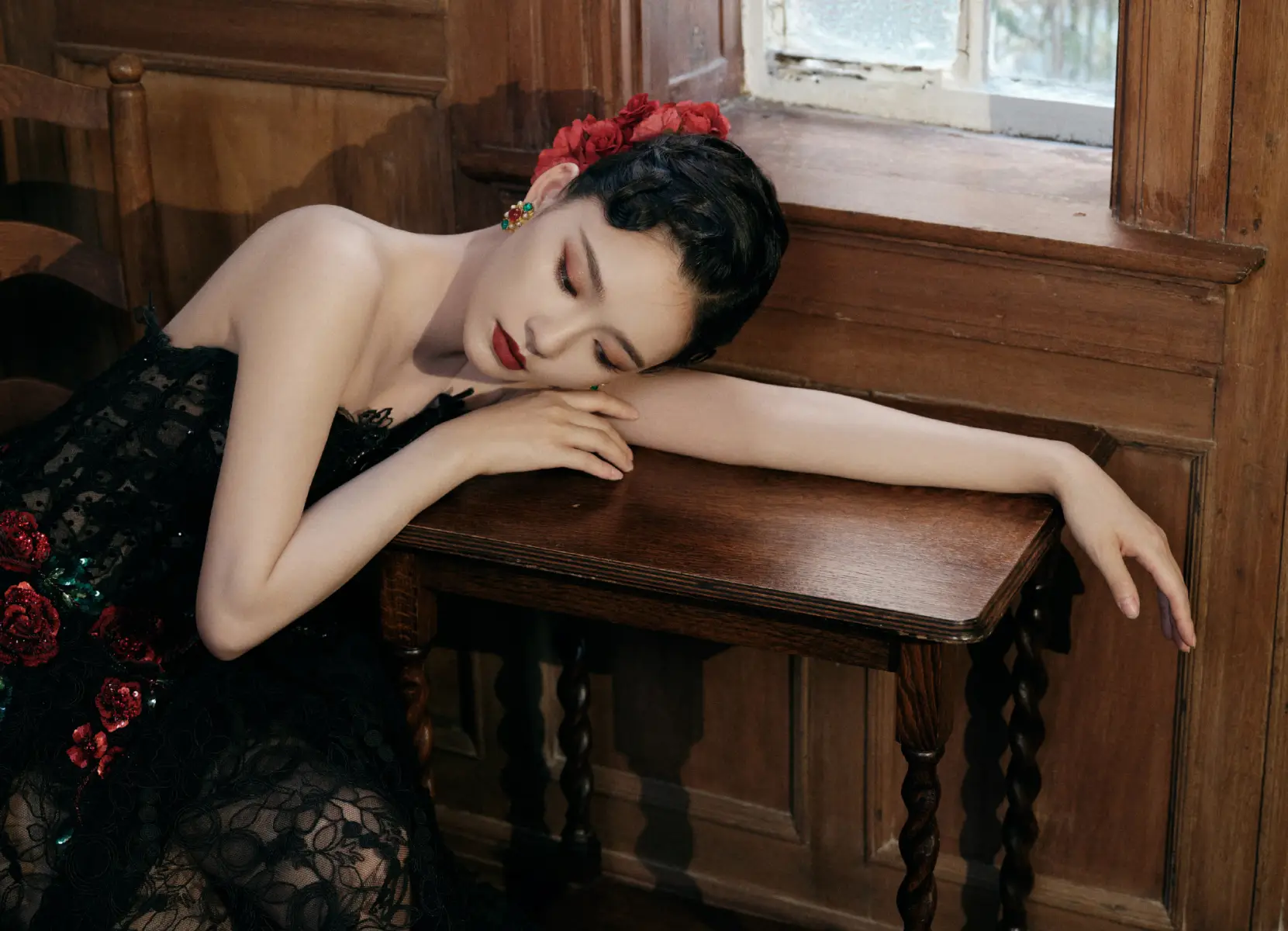 林允穿黑紗玫瑰裙嫵媚迷人 美腿在裙擺中若隱若現(xiàn)