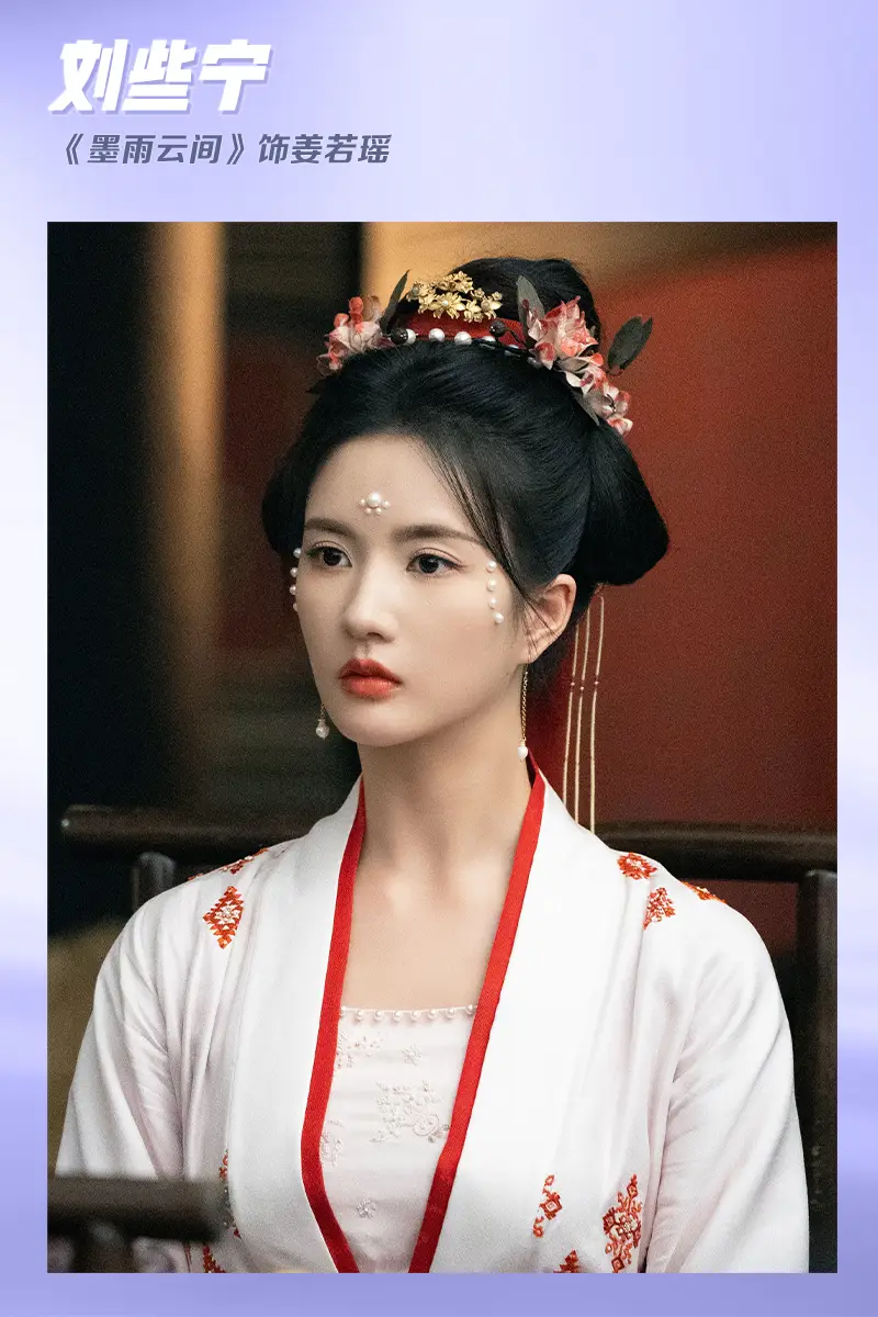 劉些寧在《墨雨云間》中飾演姜若瑤,少女發(fā)髻配上珍珠妝,很有俏皮活潑的感覺。