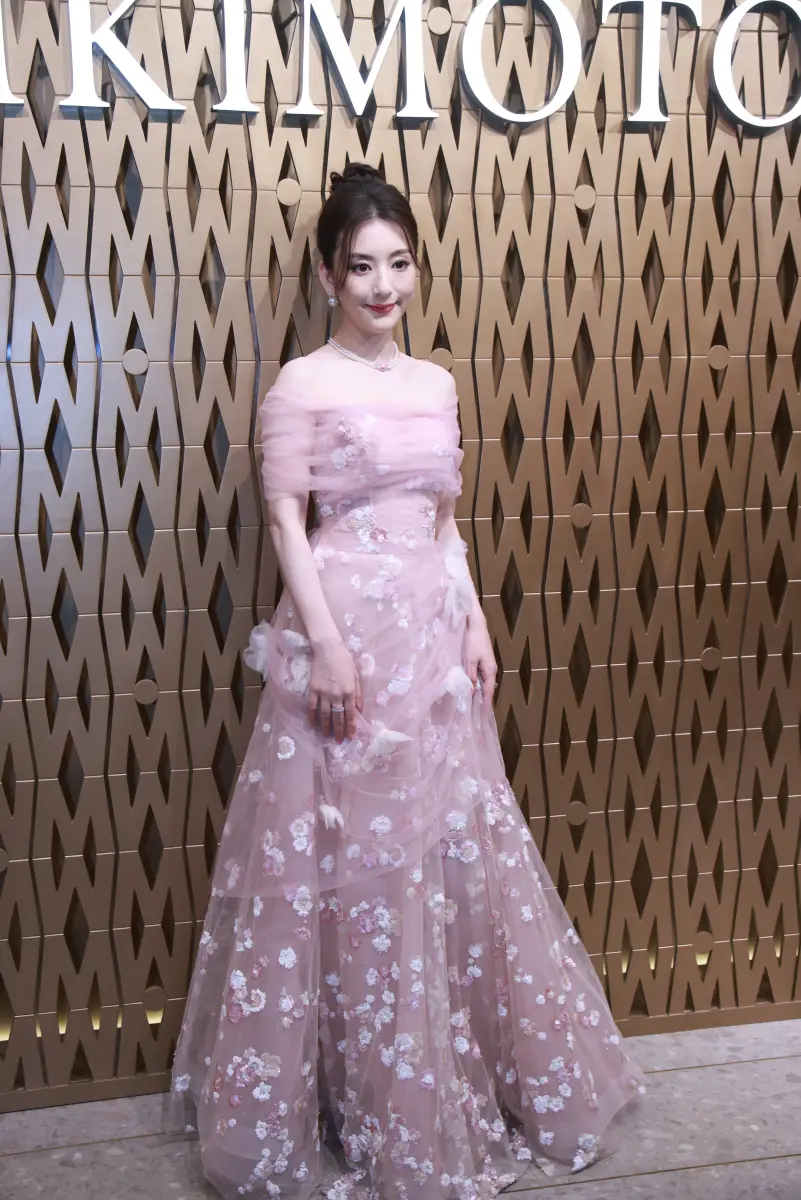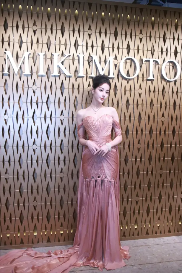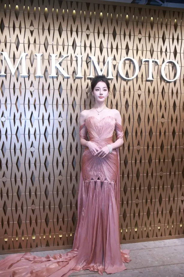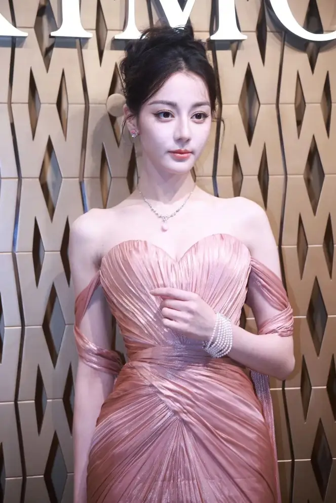 熱巴一襲玫瑰粉抹胸裙搭配珠寶登場,明艷動人,又仙又美。
