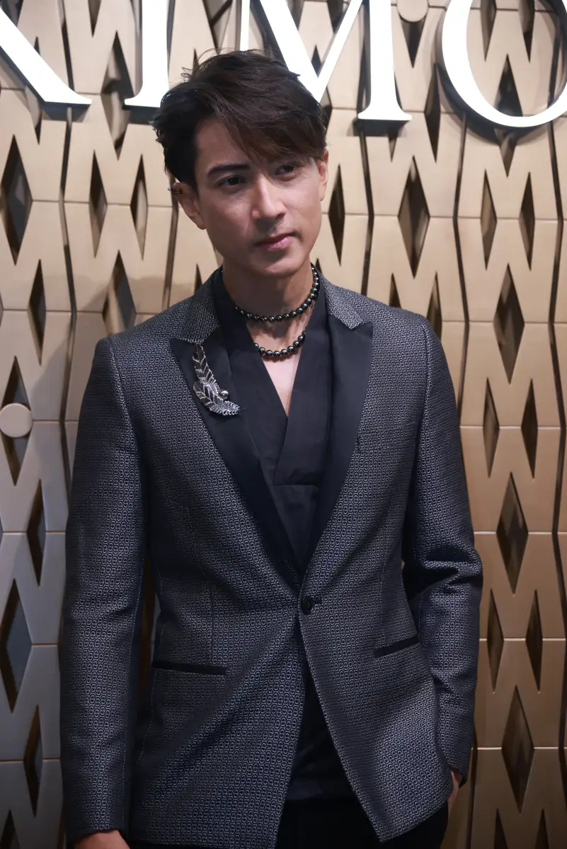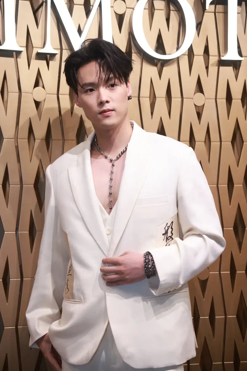 董又霖深V西裝搭配珠寶,飽賺眼球。