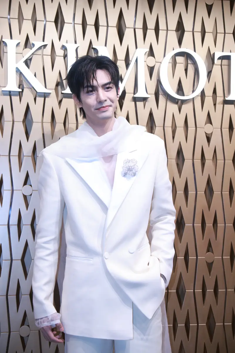 董又霖一身低領(lǐng)西裝造型露出白皙胸肌。