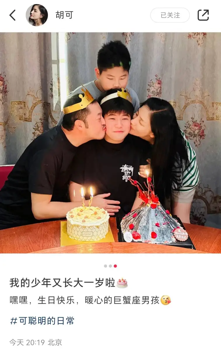 7月16日,胡可(明星經(jīng)紀(jì)公司)發(fā)文為大兒子安吉慶生。大兒子今年已經(jīng)13歲,長相和小時候相比帥氣許多。
