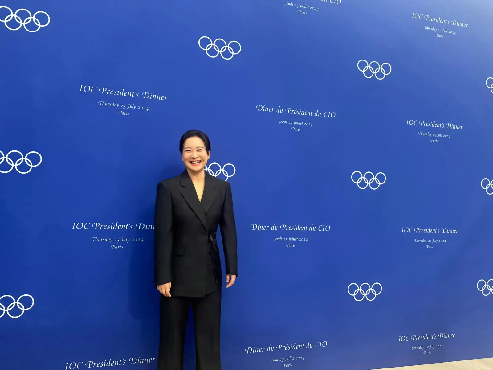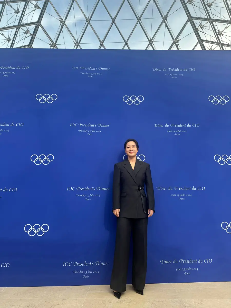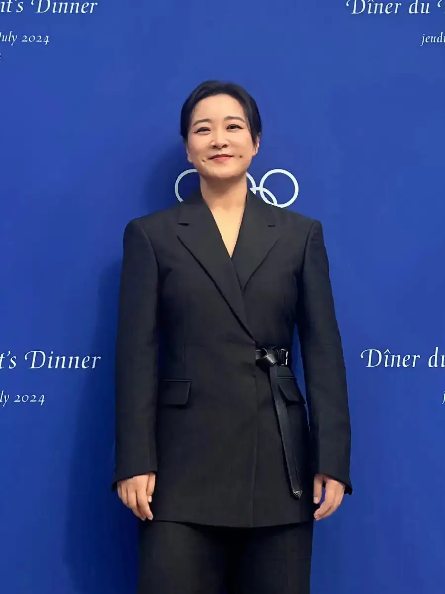 賈玲亮相巴黎奧委會主席晚宴 穿黑色西裝自信干練
