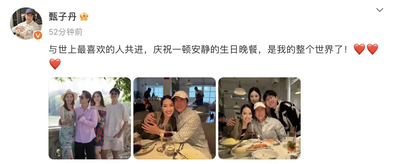甄子丹曬一家人慶生合照 和妻子擁抱幸福甜蜜