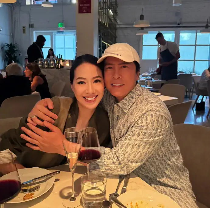 甄子丹和妻子擁抱合照。
