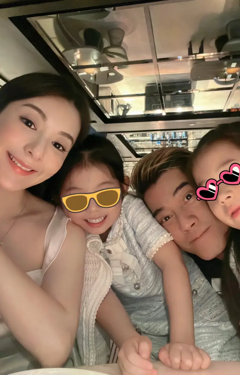 郭富城方媛和兩個女兒調(diào)皮自拍,溫馨可愛。