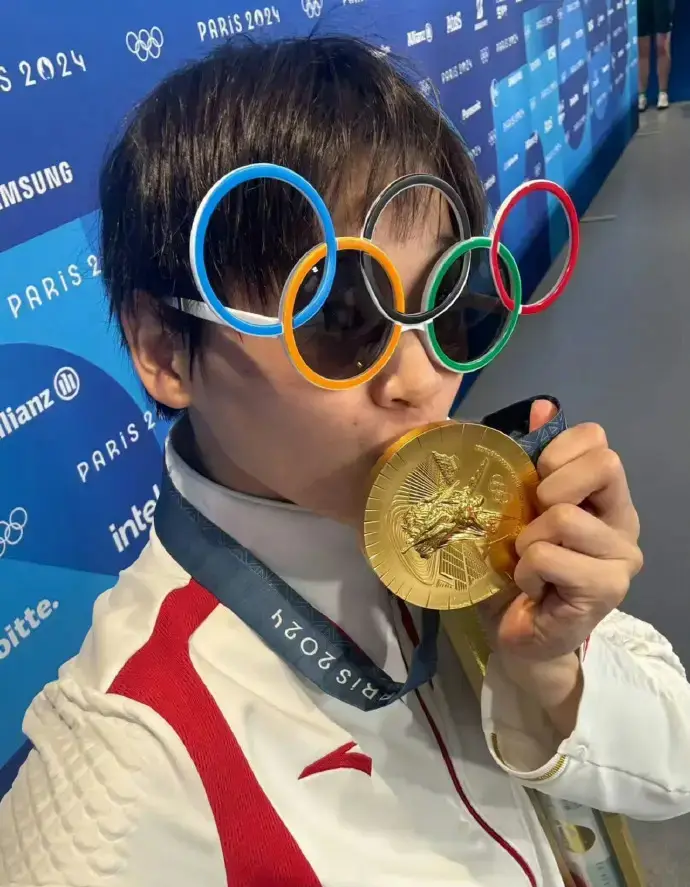 全紅嬋陳芋汐舉獎(jiǎng)牌搞怪自拍 戴五環(huán)墨鏡調(diào)皮可愛(ài)