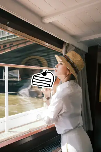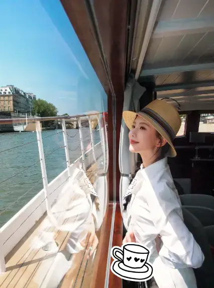 劉詩詩乘坐游船,欣賞窗外美景很開心。