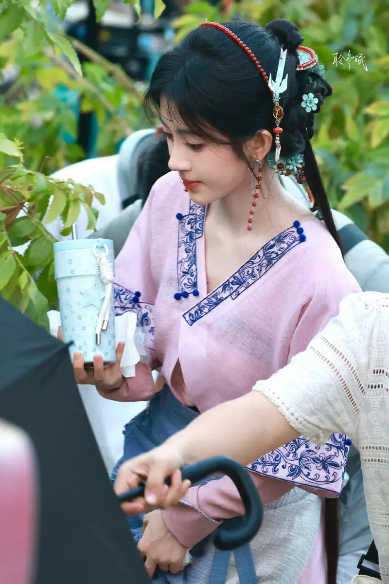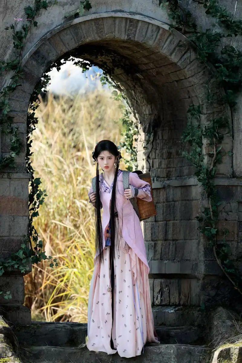 鞠婧祎穿新中式古風(fēng)襦裙清冷迷人 背著書箱表情靈動(dòng)活潑