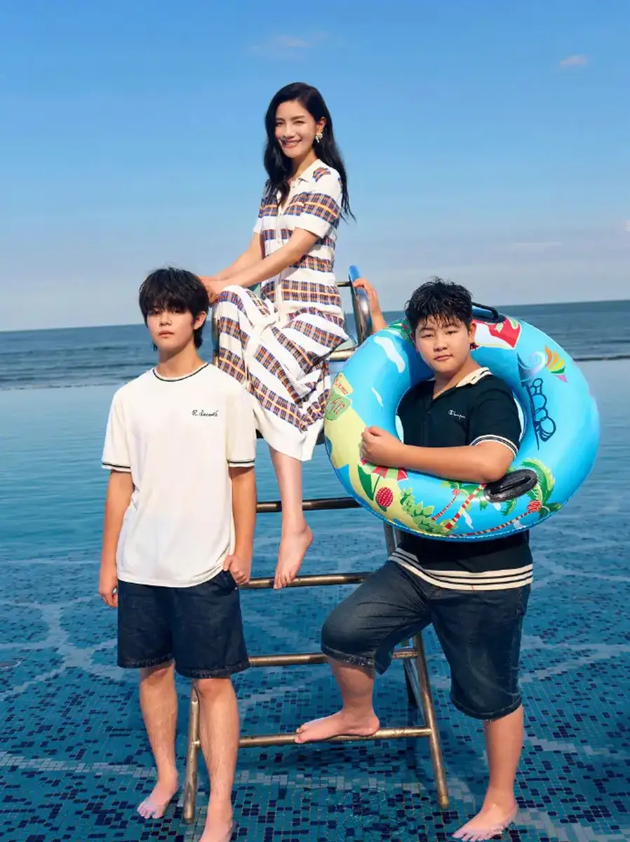 胡可與兩個(gè)兒子貼貼合影,畫面溫馨又治愈。