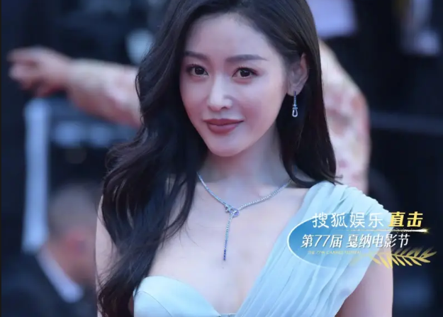 張?zhí)鞇哿料嚓┘{紅毯 穿露腰高開叉禮裙秀白嫩美腿