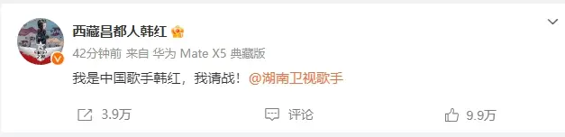 韓紅發(fā)文請(qǐng)戰(zhàn)《歌手》 網(wǎng)友:國(guó)家隊(duì)來了!