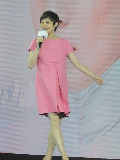 孫儷粉裙出席活動(dòng) 挺凸肚踩高跟鞋亮相