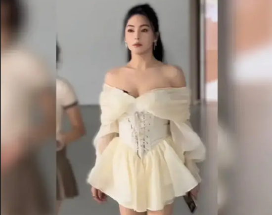 張雨綺穿白色束腰短裙身材性感 搖曳生姿似白天鵝