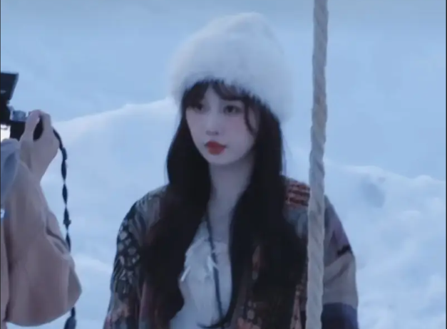 虞書欣表情靈動(dòng)宛如雪中仙子 雙手捏臉少女感十足
