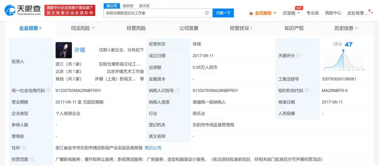 許晴名下工作室等被執(zhí)行624萬 因涉及合同糾紛案件