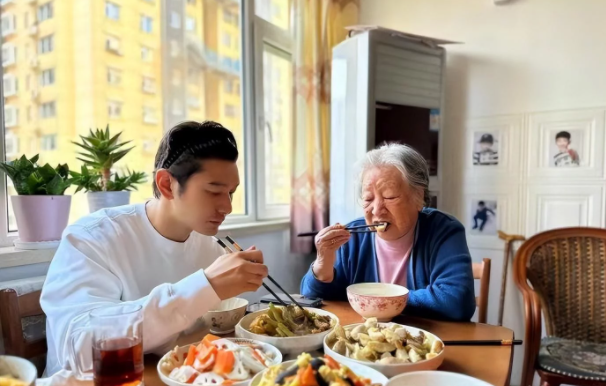 黃曉明回老家后放飛自我!和姥姥吃飯好幸福,穿T恤戴發(fā)卡太年輕