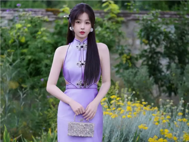 7月15日,虞書欣(明星經紀公司)一組紫色旗袍造型寫真釋出,手提拎包身材婀娜多姿。