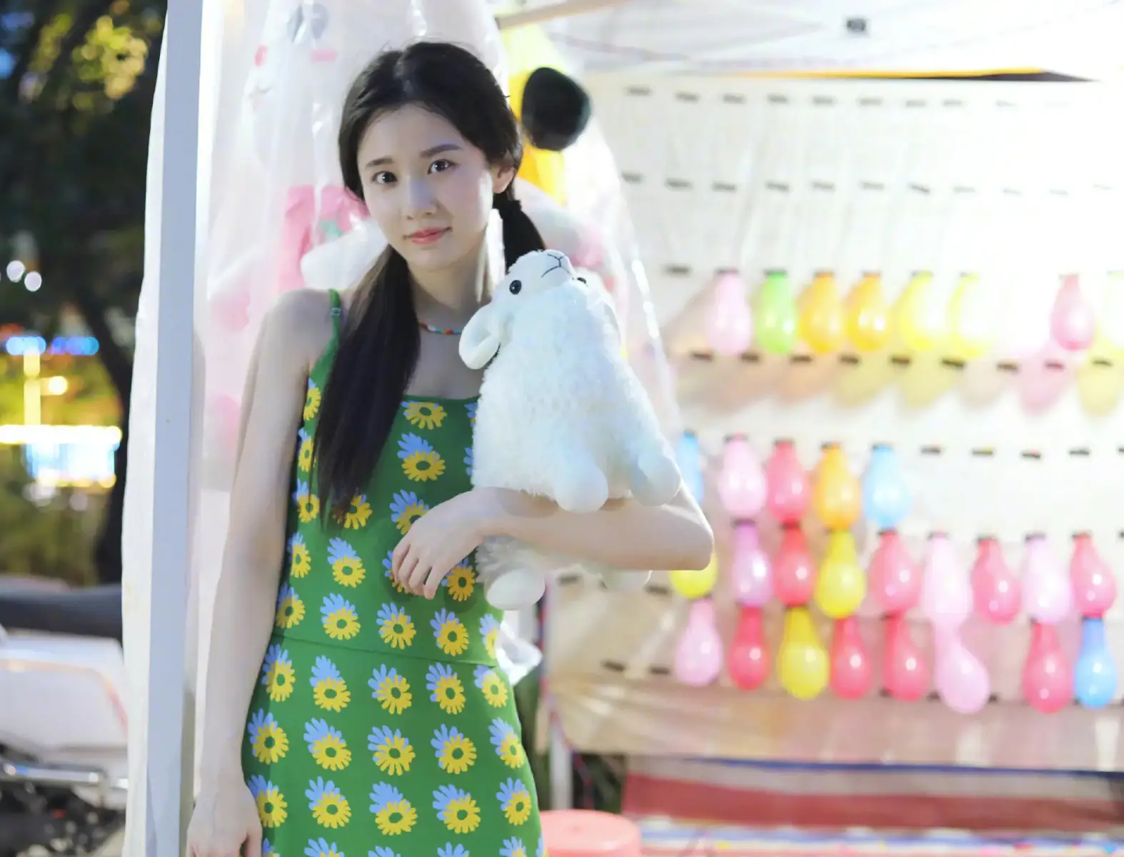 張慧雯雙馬尾穿印花裙清純俏皮 夜市玩樂活潑可愛