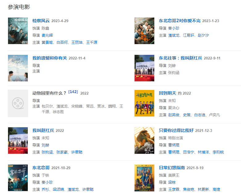 2022131日,參加《2022年中央廣播電視總臺(tái)春節(jié)聯(lián)歡晚會(huì)》,與賈冰、沙溢、包貝爾、任梓慧、余欽南、閆強(qiáng)表演小品《發(fā)紅包》。  84日,參演的電影《她的愛情》上映; 430日,特別出演的電影《只要你過得比我好》上映。