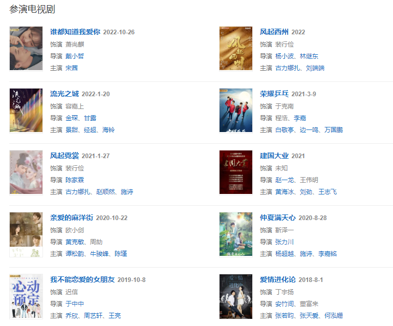 2022120日,主演的民國劇《流光之城》播出,在劇中飾演男主角容嘉上;122日、為電視劇《流光之城》演唱的插曲《不惑之愛》發(fā)布;21日,參與錄制的2022年北京廣播電視臺春節(jié)聯(lián)歡晚會播出,與李沁、羅羅、戴羽彤共同表演歌舞《恭喜發(fā)財(cái)》。