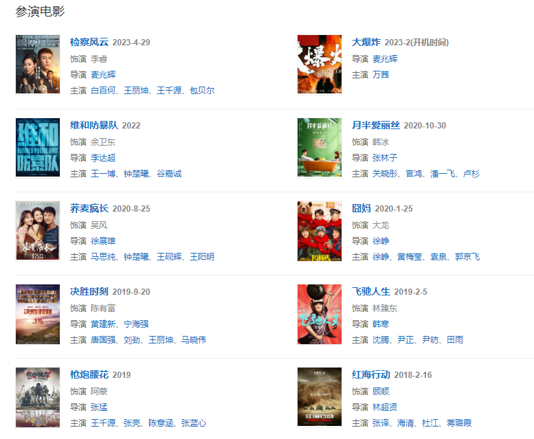 代表作品:上癮、紅海行動、結(jié)愛·千歲大人的初戀、破冰行動、飛馳人生、王牌部隊(duì)、愛上特種兵