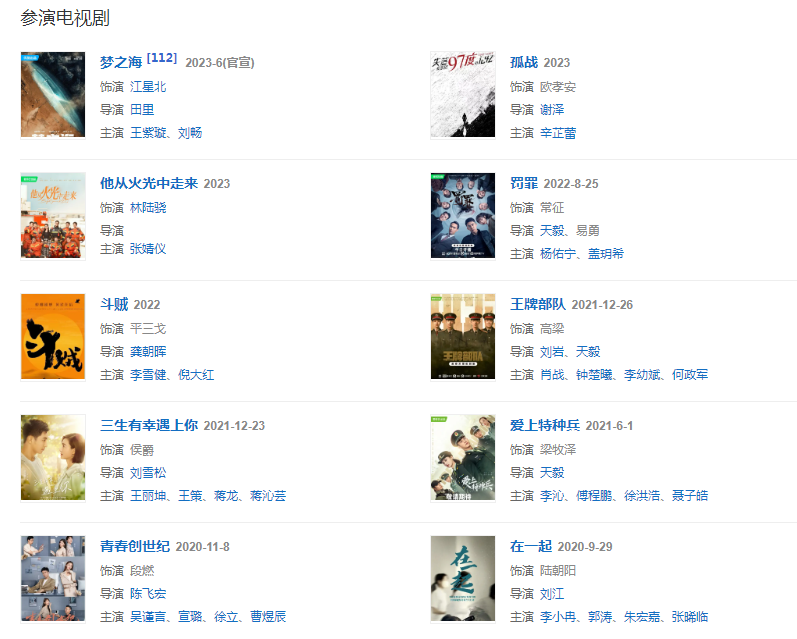 20211月,參加2021年北京臺春晚聯(lián)排,與陳飛宇、李沁、鞠婧祎聯(lián)袂表演的《少年》  ;61日,與李沁合作主演的現(xiàn)代軍旅劇《愛上特種兵》播出,在劇中飾演梁牧澤;611日,參演真人秀節(jié)目《做家務(wù)的男人第三季》播出  ;101日,參加《中國夢·祖國頌——2021國慶特別節(jié)目》,在晚會中與劉燁、杜江一同表演節(jié)目《中華力量》;1223日,與王麗坤主演的都市劇《三生有幸遇上你》在東方衛(wèi)視播出,他在劇中飾演高富帥建筑設(shè)計(jì)師侯爵;1226日,領(lǐng)銜主演的現(xiàn)實(shí)題材熱血軍旅劇《王牌部隊(duì)》開播,在劇中飾演軍人高梁;參加真人秀《萌探探探案》。